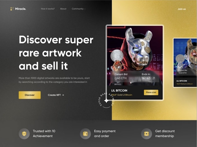 - Design exquisite NFT/ Crypto landing page that matches your brand's look and feel (Colour, Typography, Style guide)